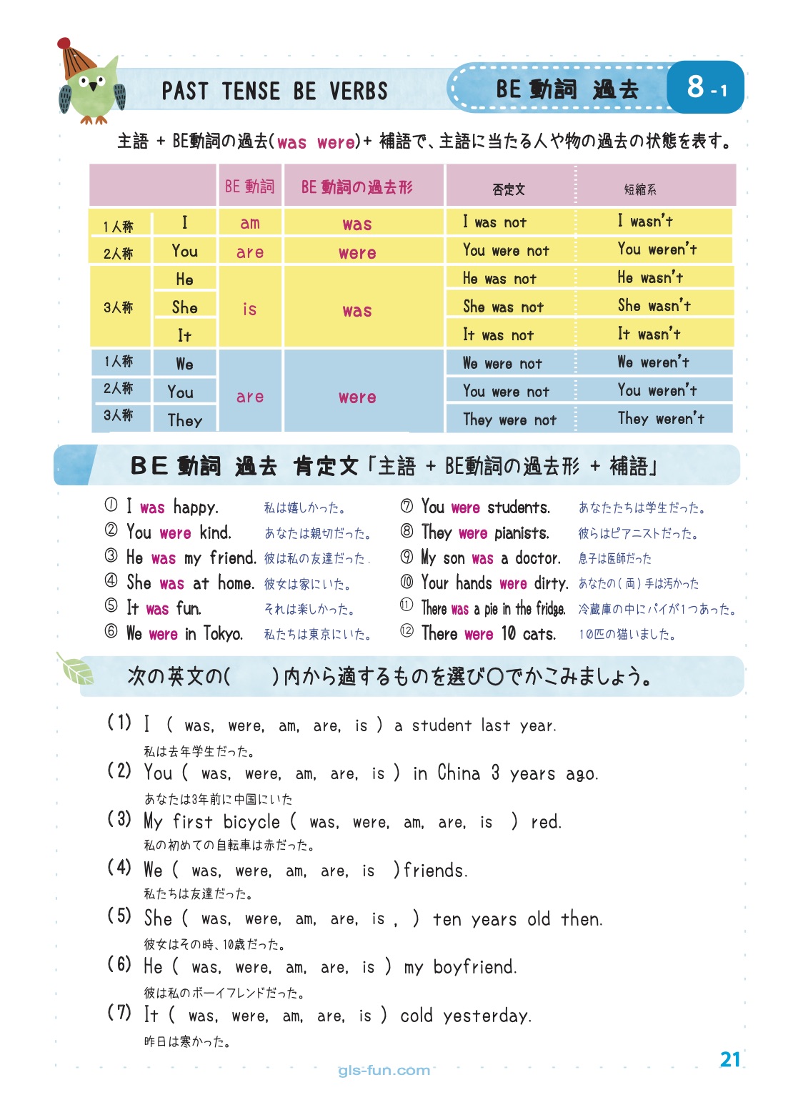 BE動詞 過去形 肯定文