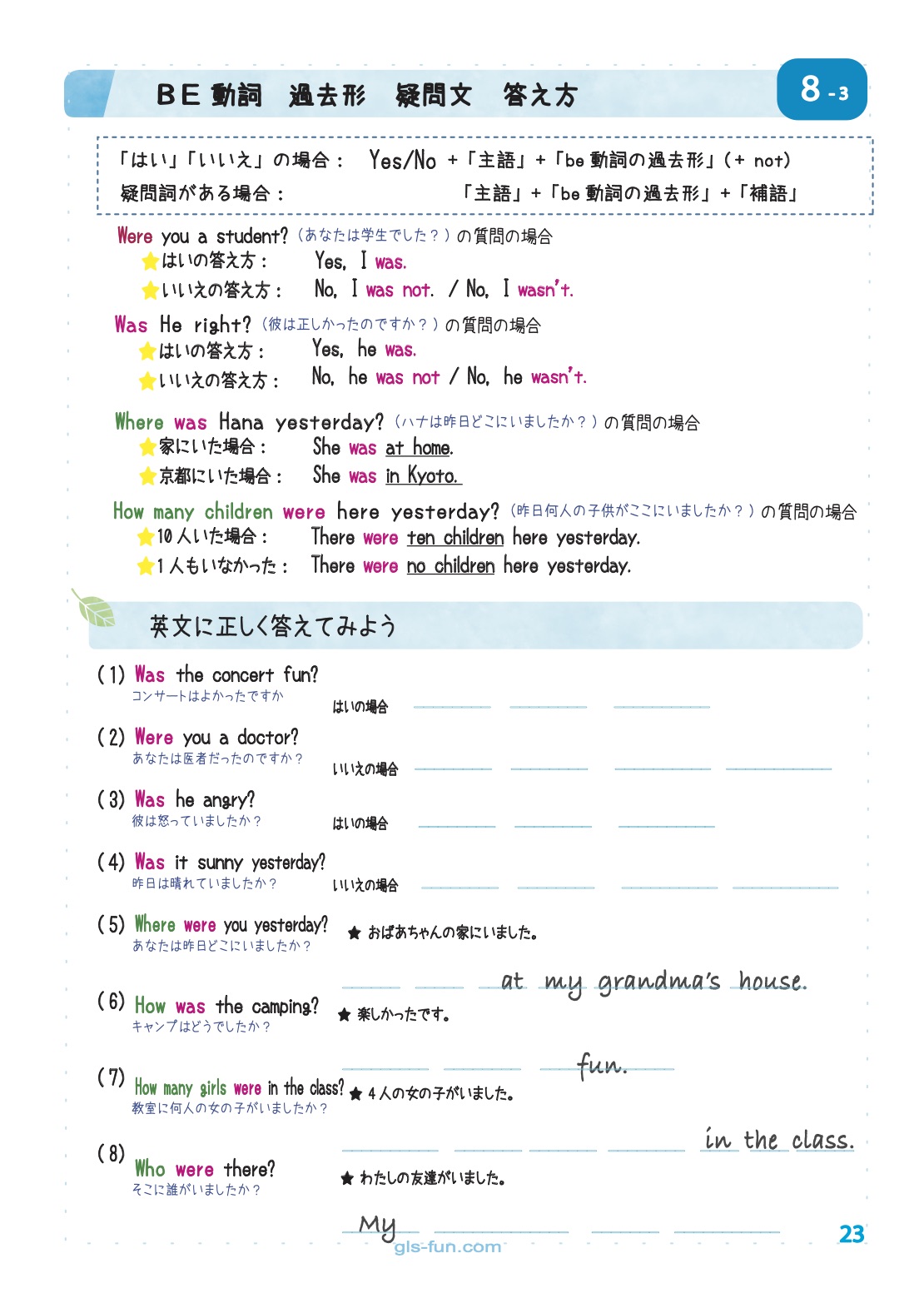 BE動詞 過去形 疑問文の答え方